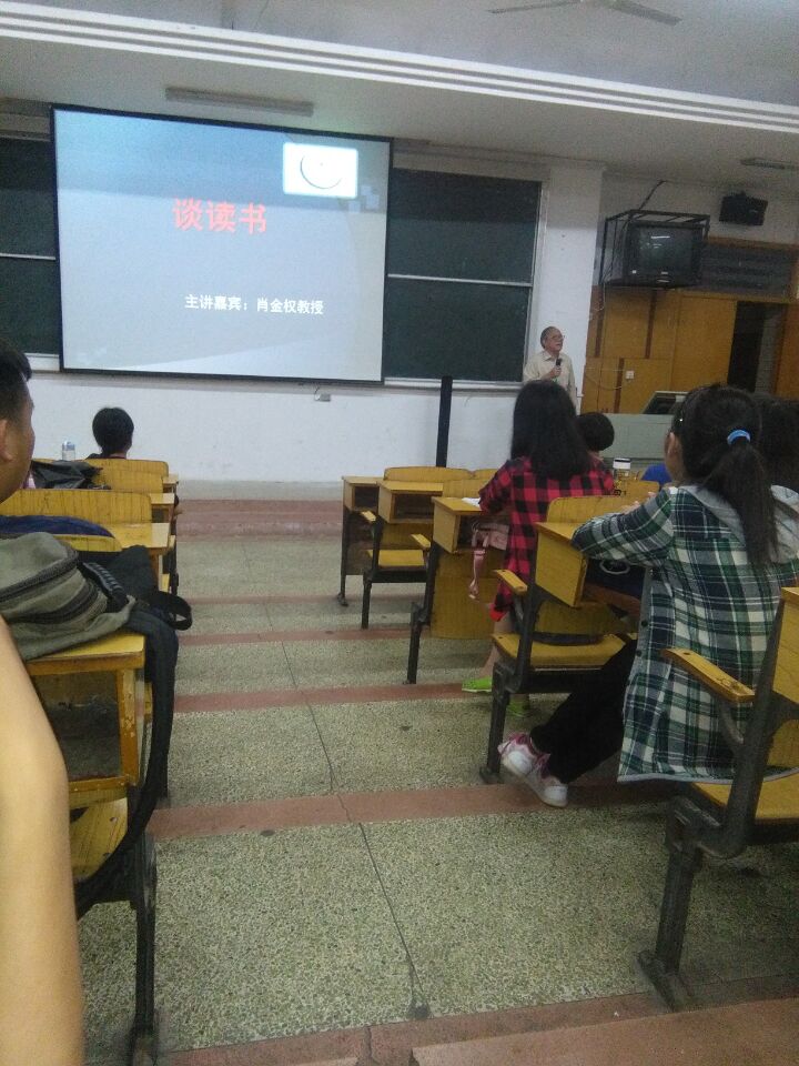 201655日,我院在A01举办了以肖金权教授为主讲人、以谈读书为主题的演讲。聆听本次演讲的有胡永红辅导员、大一全体学生及大二部分学生。