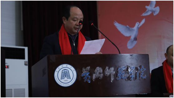 来自华东师范大学的刘顺英校友作为校友代表发言。作为我院首届本科毕业学生,刘顺英深情回忆了来校时的彷徨,进校后师生们对他的帮助,以及在校时与老师们的深情厚谊,并祝愿每位学弟学妹,让黄冈师院成为你人生杨帆远航的新起点;祝愿黄师,犹如一座灯塔,恒久矗立,更久祢新;祝愿化学化工学院,越办越好,越办越强大;祝福老师们身体健康,幸福祥和!