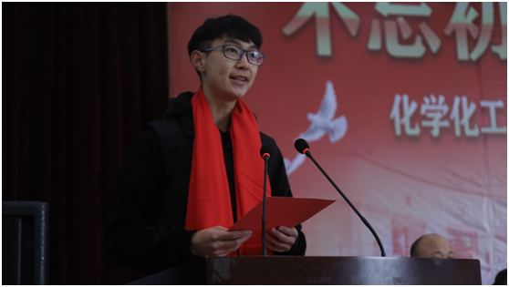 来自学院应用化学专业的方迅同学代表在校学生发言。首先代表全体在校学生祝福我们的学院生日快乐,向参加本次庆典活动的领导、来宾致以诚挚的感谢和崇高的敬意。谢谢他们对学校的关心和支持,对返回母校参加院庆的各届校友们,表示真诚的感谢与衷心的祝福。并简单介绍自己在校的成长历程,代表全院学生表态,必将借鉴学长学姐们的成功经验,牢记“厚德、博学、力行、致远”的校训,铭记身上肩负的历史使命,合理规划人生,严格要求自己,努力学好专业知识,练就一身过硬本领,争做社会有用人才。用自己的努力,创造更辉煌的学业,成就更美好的未来,回报祖国和人民,回报母校和老师。