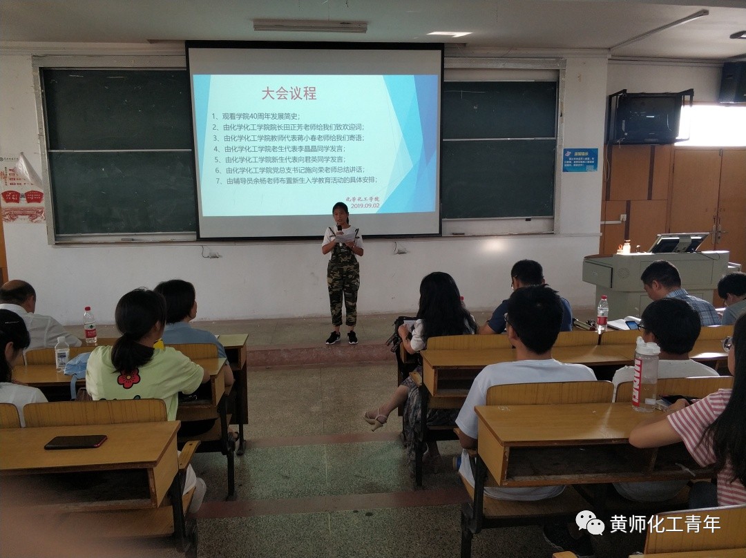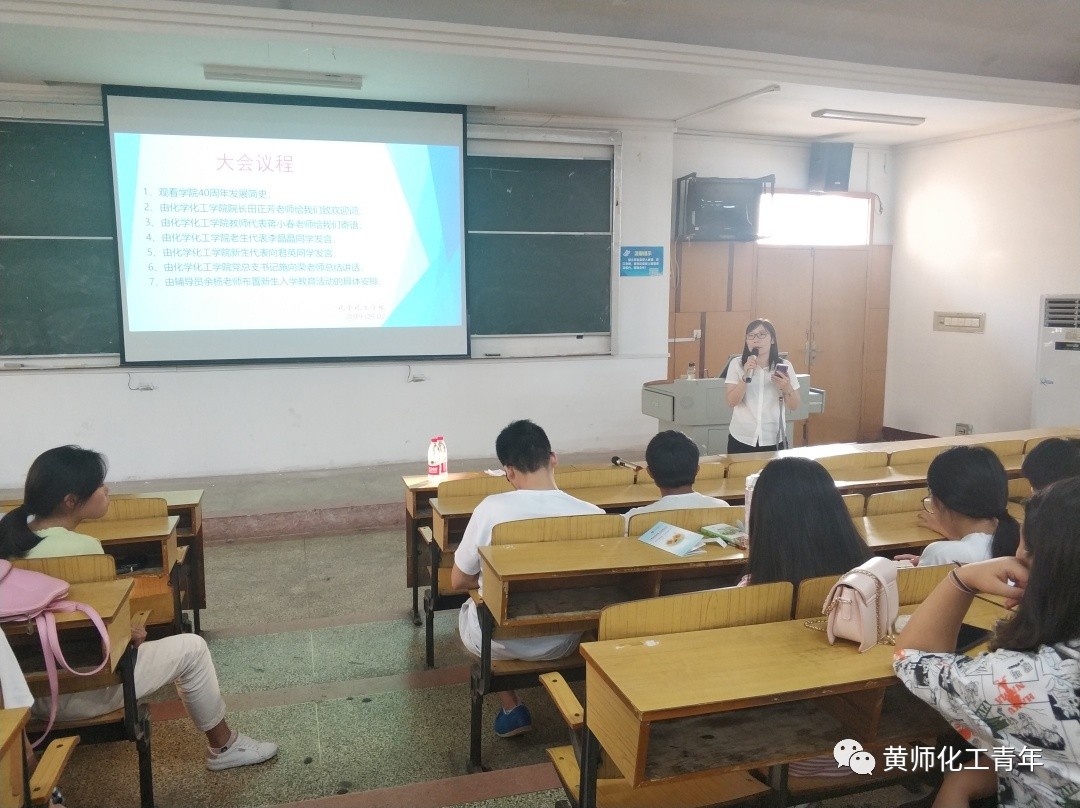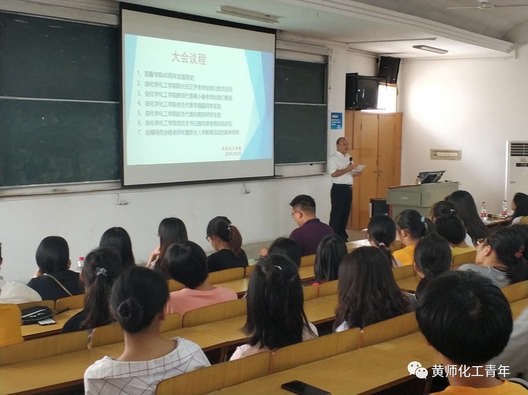 会议伊始,大家观看了化学化工学院40周年发展简史。而后,田正芳院长致欢迎词。他就视频讲解了化学化工学院并提到往届校友、往届辉煌。先人筚路蓝缕,赢得如今荣誉,我们为之激动、为之自豪。