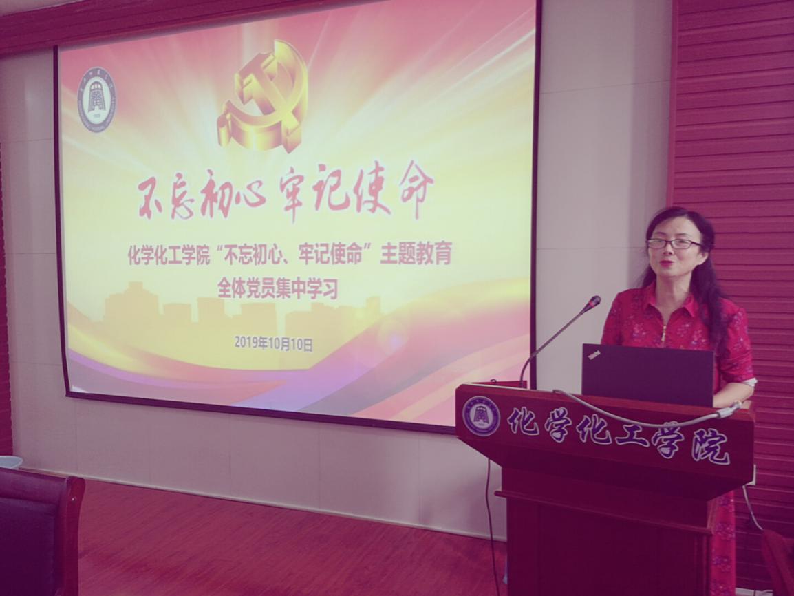 1010日下午,化学化工学院开展“不忘初心牢记使命”主题教育学习活动。化学化工学院党总支书记施向荣主持,全院教师党员和学生党员共计70余人参加了学习。