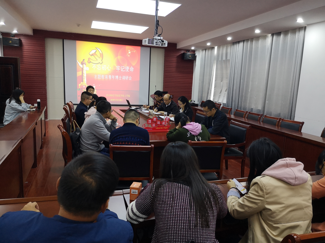 1025日上午,学院班子成员围绕实验室及坐班人员情况及存在问题率先开展主题教育调研。1025日下午,学院班子成员围绕青年博士、学生党员、入党积极分子、贫困生在工作和学习中存在的困难进行了全面的调研。领导班子认真听取了实验室人员、坐班人员和全院青年博士学院建设学科建设、实验室管理和人才引进等方面的意见建议。施书记表示,接下来将根据大家提出的意见建议,认真进行问题检视反思,共同研究解决方案、提出改进办法及措施,不断创新和完善我院工作思路举措,切实将调研及此次主题教育的成果体现到推动学院建设发展的过程中。