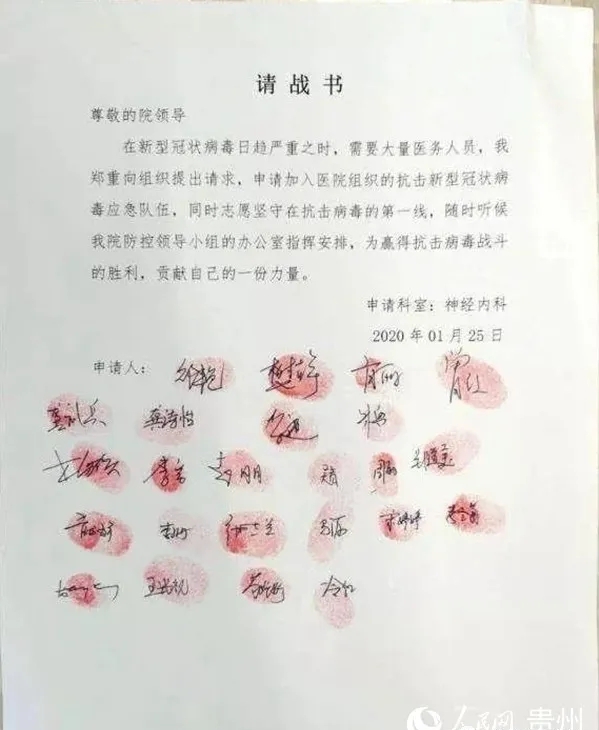 还记得那张申请上一线的医生护士的《请战书》吗?