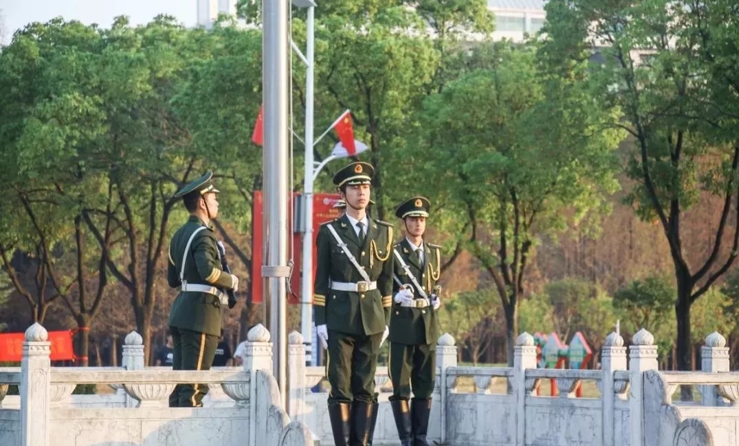 13.去旗台前,奏唱国歌,看五星红旗冉冉升起。