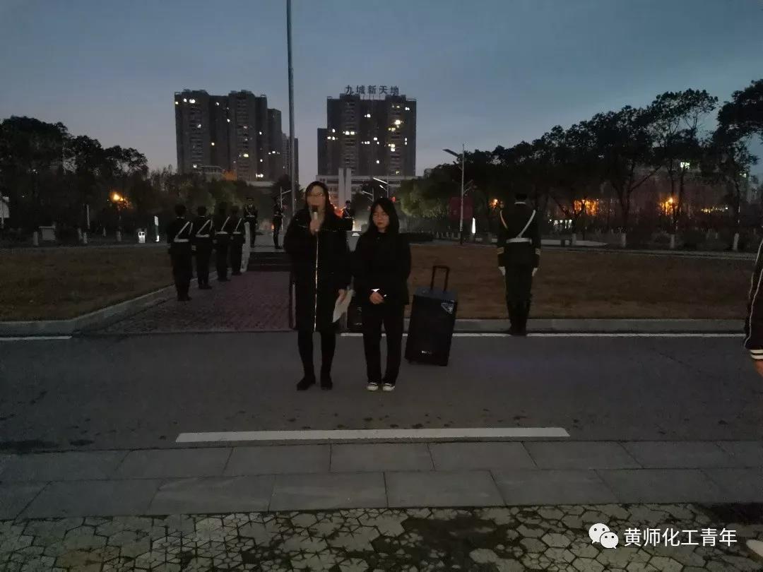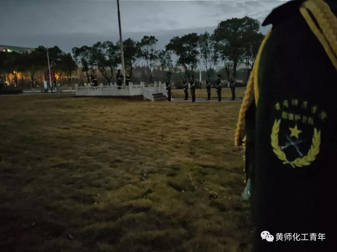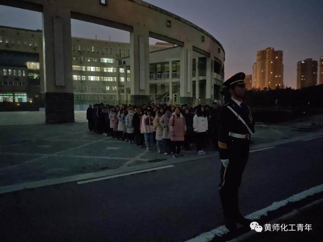 12月23日凌晨六点半,我院在博学楼前参加了庄严的升旗仪式,大一全体学生、学生会全体成员以及分团委书记余杨老师参加升旗仪式。