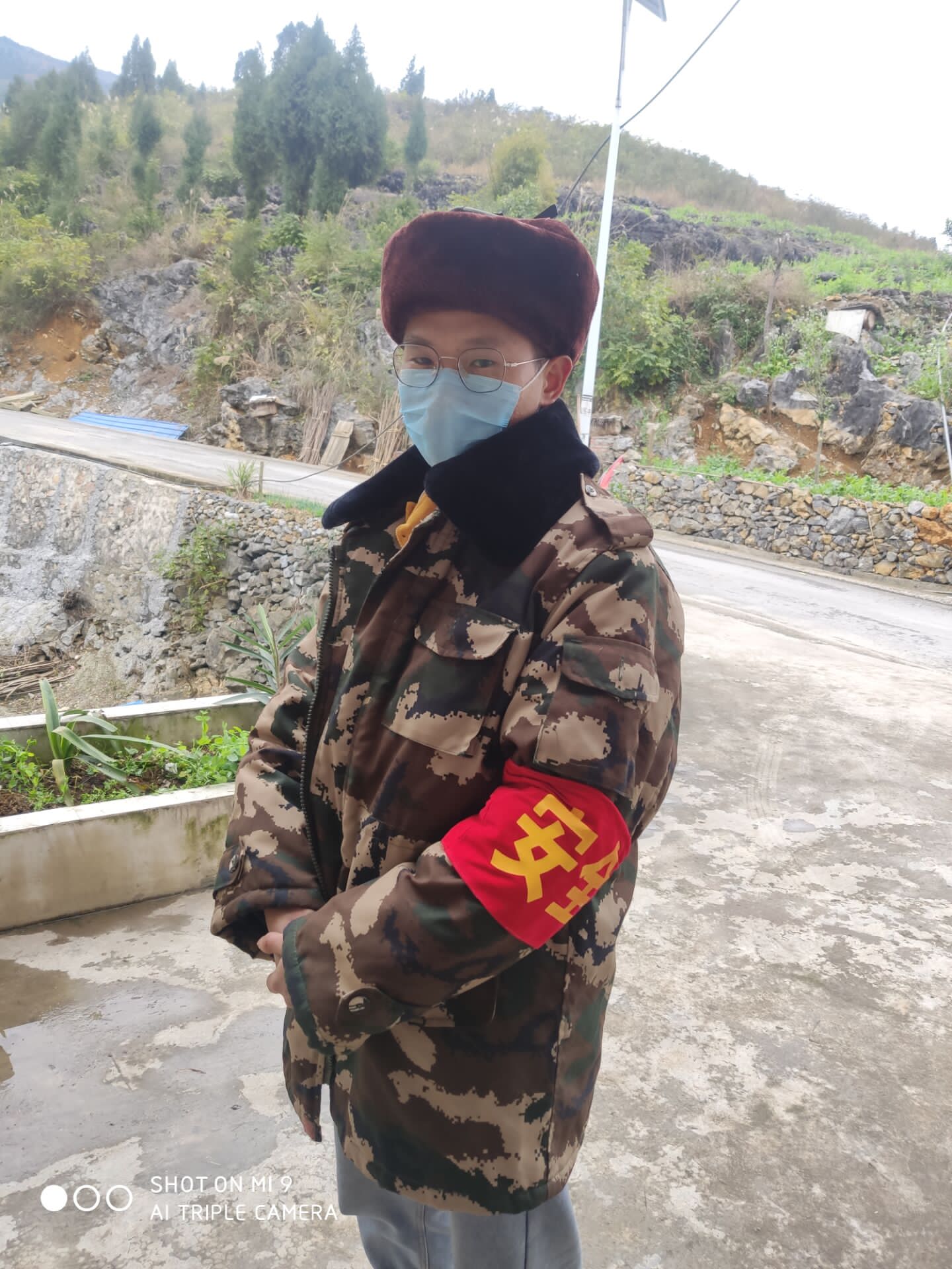 一位来自贵州遵义的青少年也加入了这次疫情志愿者的行列里,临危不惧,毅然决然地加入到了他家乡所在的疫情防控队伍中。他每天的防控工作主要是设置路障、下发宣传单、下乡喷洒消毒水等等。看似简单的工作却一次次重复着,但每一次的工作都似乎离疫情曙光的到来更进了一步。