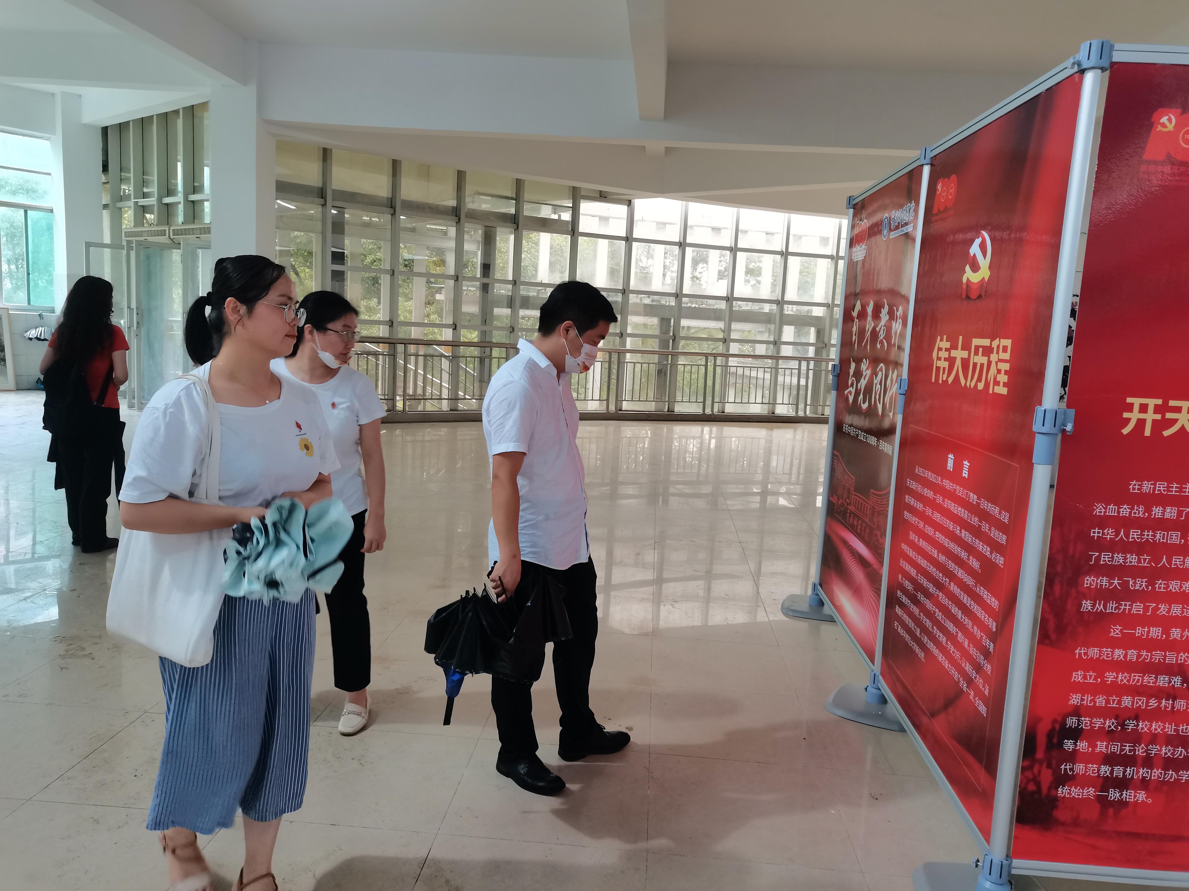 主题展共有“开天辟地 黄师初创”、“改天换地 黄师积淀”、“翻天覆地 黄师崛起”、“惊天动地 黄师奋进”四个篇章。一幅幅作品,一组组数据,记录着党和黄师的百年历史及辉煌成就,展现了党和学校百年来翻天覆地的变化。通过观看党和黄师百年的奋进历程,激发师生为学院和学校事业的发展奋勇前进。体教职工及学生党员参加了本次活动。