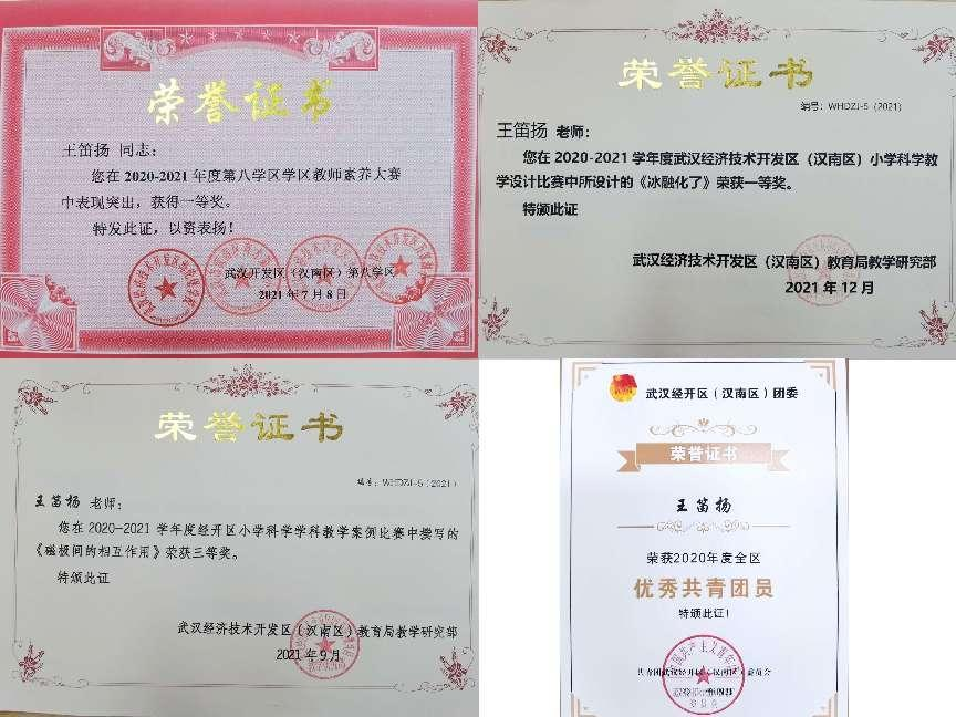 10.2021年05月 武汉开发区(汉南区)2020-2021学年度中中小学教师教学比武与展示活动中,荣获“二等奖”。