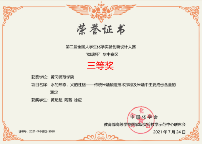 英国365集团官网一直以来十分重视本科教学改革工作,支持和鼓励教师开展教学研究和探索。张龑、杨一思老师注重教学观念、教学内容的创新,将中学化学的知识点与综合实验活动相结合,开展了一系列项目化学习(PJBL)的教学活动,从2019年开始,在化学专业的中学化学实验教学指导课中开设了“传统米酒酿造技术探秘及米酒中主要成分含量的测定”的实验,创新了米酒有效成分的测定方法和实验方案,学生既可以实验室中利用专用仪器完成实验,又可以居家利用日常工具做实验。通过三年的教学实践摸索和总结,发表了相关文章,在新冠疫情常态化的今天,该实验教学成果具有很强的实用价值。两位老师还指导学生根据该实验项目参加了2021年第二届全国大学生化学实验创新设计竞赛科普类赛道,获得华中赛区三等奖。