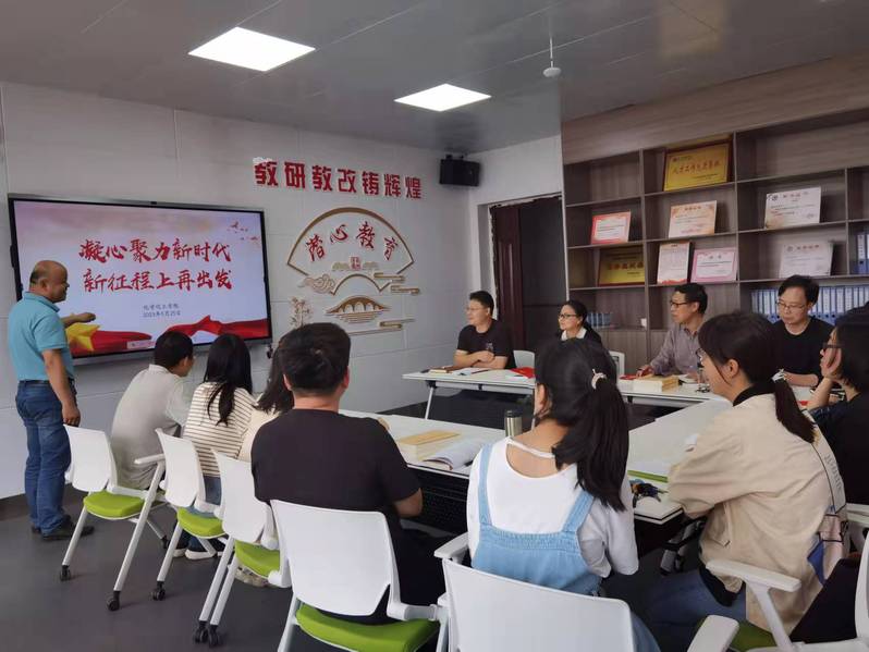 5月25日,院长田正芳在化工楼406室为教工第一党支部党员教师上了一堂题为《凝心聚力新时代 新征程上在出发》的党课。