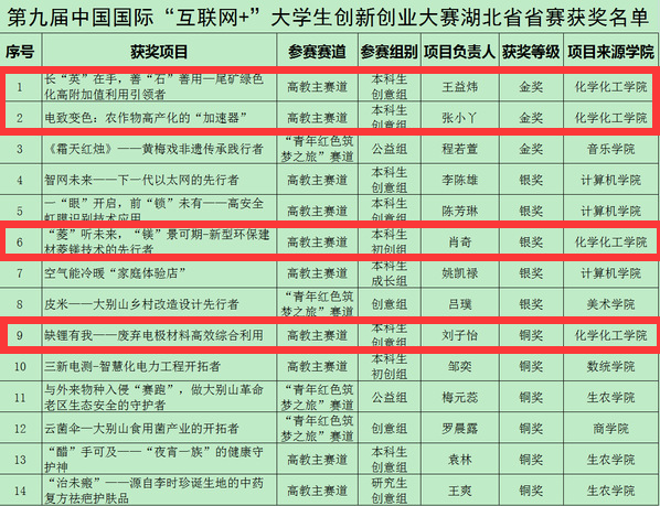 7月30日,为期两天的第九届中国国际“互联网+”大学生创新创业大赛湖北省复赛在湖北工业大学落幕。经过激烈角逐,我共获得金奖2项,银奖1项,铜奖1创历史最好成绩。