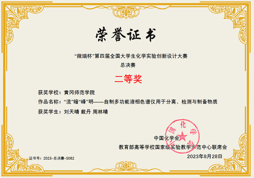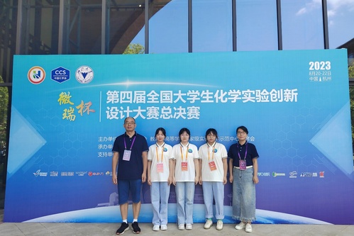 8月20日-8月22日,“微瑞杯”第四届全国大学生化学实验创新设计大赛总决赛在浙江杭州成功举行。由我校化学化工学院张龑、杨一思教师指导,刘天晴、戴丹、周林晴3名学生组成的团队以华中赛区一等奖的身份获得参加全国总决赛的资格,并在全国总决赛中荣获二等奖。这是我校在该赛事上首次实现国家级奖项的突破。