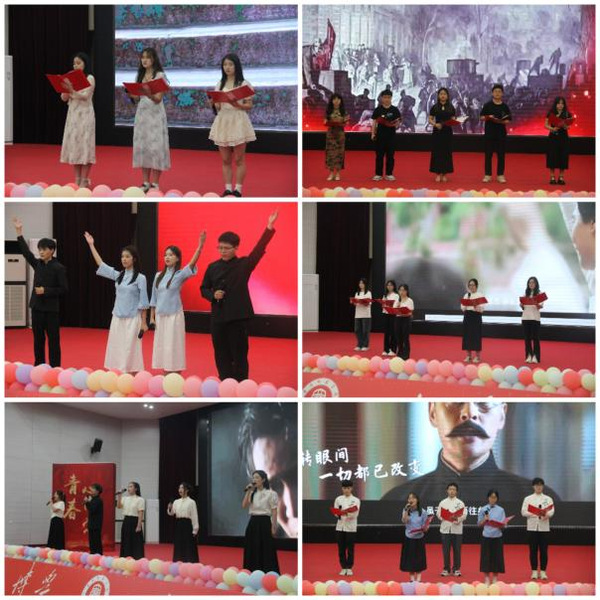 第二环节为演绎环节。选手们各显身手,有的深情歌唱、有的做温馨手语操、有的演绎扣人心弦的情景剧……歌曲《少年中国说》的激昂合唱,鼓励着每一个年轻人勇敢地追逐自己的梦想,不畏艰难,不惧挑战,尽情展现自己的风采;情景剧《五四风雷》把晚会推向了高潮,让同学重温了那段屈辱和抗争的历史,这不仅仅是对历史的追忆,更是对当代青年一代的号召:立志做有理想,敢担当,能吃苦,肯奋斗的新时代好青年。比赛现场气氛热烈,展现了青年人的朝气和活力,让人深刻感受到了青年人的责任和使命。