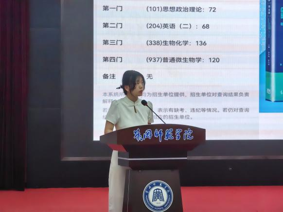 会议第一项,李辛妹、路威、陶茜、杨雪莉、金巧5位考研上岸的优秀学子上台分享了各自成功的考研经验和感悟。她们从考研的心路历程、备考策略、科目复习方法等多个方面进行了深入浅出的讲解。她们以自身情况为依据,结合当前考研形势加入自己的思考,多角度、有重点,各有侧重,鼓励正在备考的学弟学妹们稳住心态。她们的分享让在座的学生受益匪浅,纷纷表示将认真借鉴学长学姐的经验,为自己的考研之路做好充分的准备。