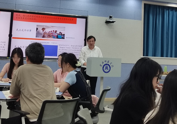 王基家从“越走越宽的民主之路”“科学有效的制度安排”“彰显优势的民主模式”“可资借鉴的民主典范”四个方面诠释、解读了如何完整、准确、全面的认识我国社会主义的“全过程人民民主”。对“全过程人民民主”理念形成、理论发展、路径探索、实践演变进行了深入浅出的讲解,重点回顾了中国共产党始终致力于发展“全过程人民民主”的历史脉络,深入剖析了“全过程人民民主”的丰富内涵和科学本质,展示了中国式的“全过程人民民主”所取得的伟大成就和不断壮大的实践成果,引导同学们正确认识、深刻辨析中国式“全过程人民民主”与西方“民主”的本质区分,了解掌握判断真正的民主、是否“民主”实质标准,警醒同学们在绚丽多彩、复杂多变的思潮冲击面前,一定要头脑清醒,坚定方向,把稳思想“方向舵”、校准行动的“航向标”。