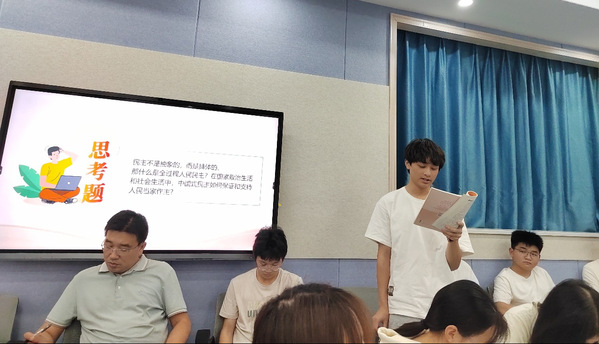 5月15日下午,校党委副书记王基家以《全面认识全过程人民民主》为题,在求实楼410为化学化工学院学院化学和制药工程专业2023级同学讲授思政课。