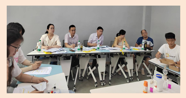 为使比赛更接地气,我校特聘黄冈中学最受学生欢迎的化学老师陈晓峰老师作为校外评委,以及化学化工学院徐兰英老师、张龑老师、叶辉老师和周林楠老师共同担任化学组竞赛的评委,现场对选手表现情况进行点评。