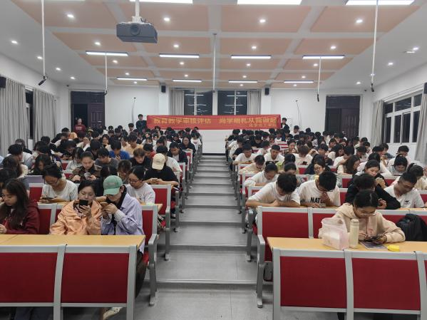 知识竞赛的题目主要围绕审核评估基本常识、学校概况和学院概况三个主题展开。在竞赛过程中,同学们认真作答,展示良好的迎评风貌和较为扎实的教育教学审核评估知识储备。