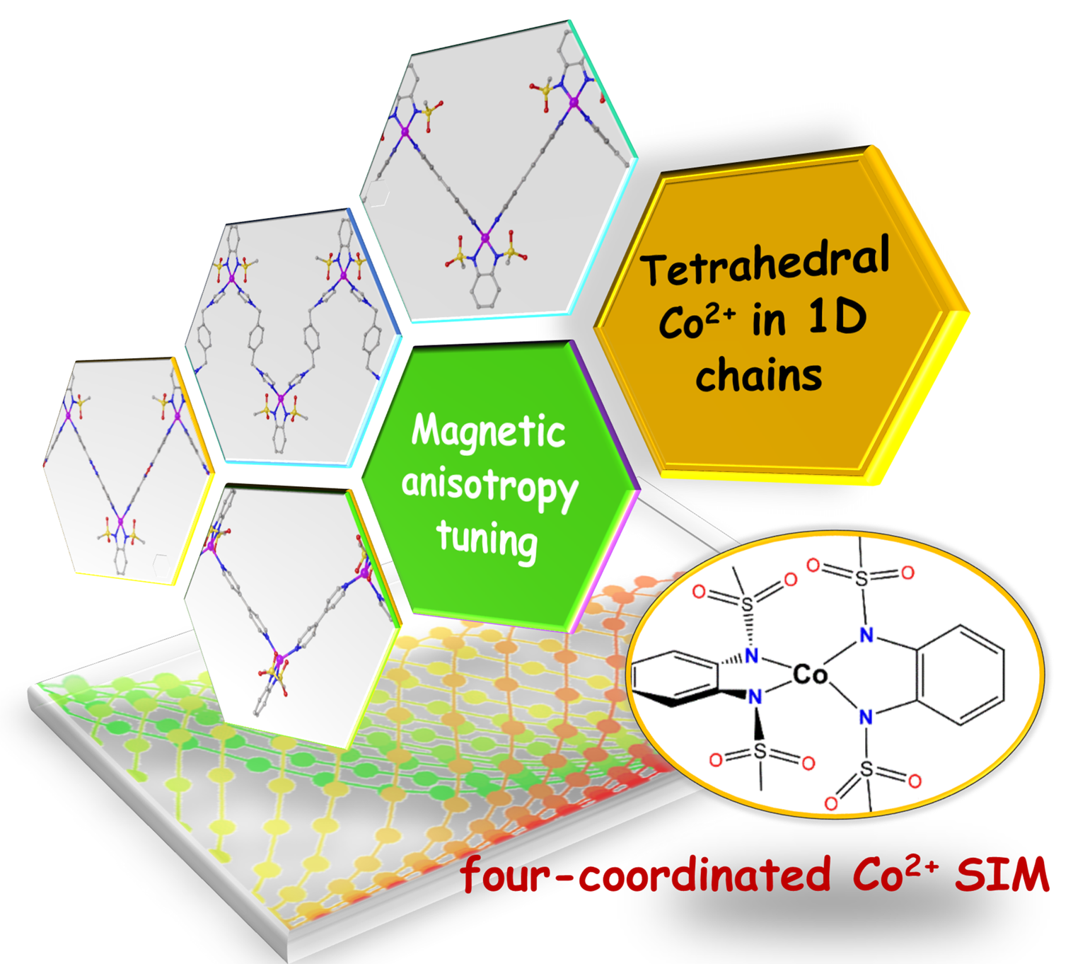 通过改变金属离子的配位环境来调节磁各向异性对于开发高性能单离子磁体具有重要意义。研究团队以不同长度的有机配体作为调控手段,构筑了四种结构不同的一维四配位钴链配位聚合物,研究结果表明钴离子的磁各向异性得到了有效调控。上述结果不仅丰富了低配位金属中心单离子磁体家族,而且为调节一维链中四配位钴离子的磁性各向异性提供了一种配位链平台。该工作以 “Tuning Magnetic Anisotropy of Four-Coordinated Cobalt(II) in Chain Complexes via Varying Organic Linkers”为题,发表在Crystal Growth Design。邵东副教授为论文第一作者和通讯作者,英国365集团官网为论文第一通讯单位。南京大学王新益教授、南方科技大学张元竹教授、印度理工学院Singh教授参与了本工作的研究。