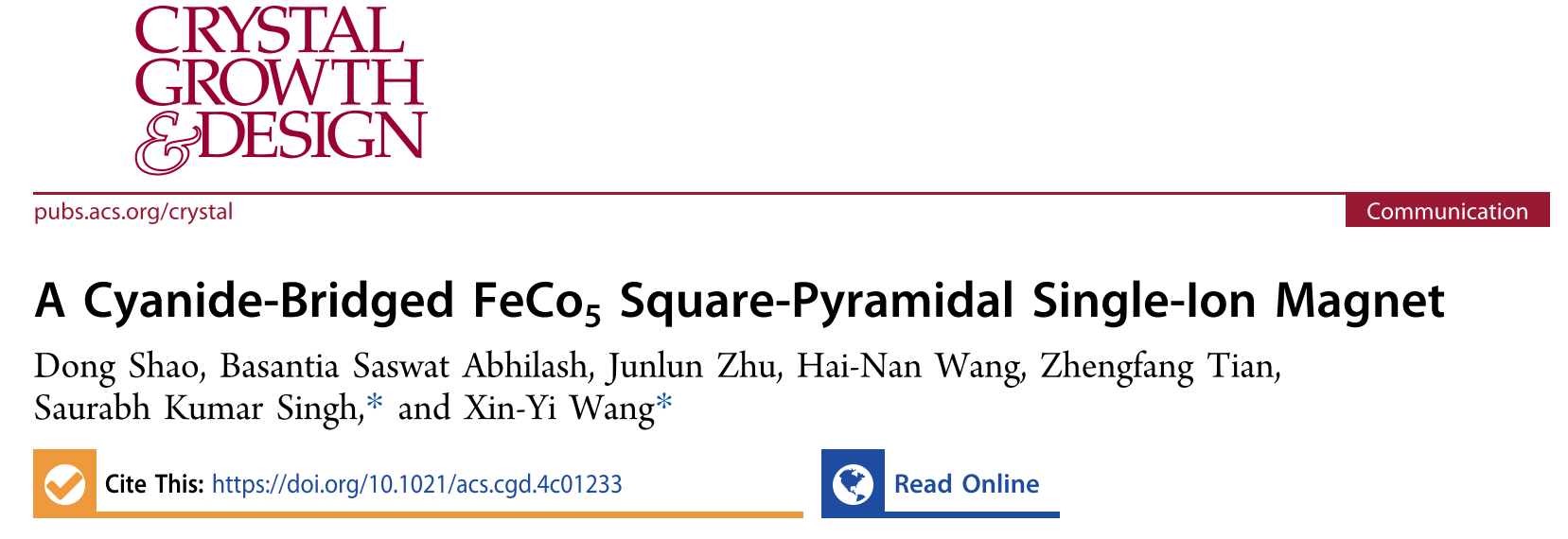 单分子磁体是无机化学研究前沿,单分子磁体因在量子计算和量子存储方面具有潜在的应用而受到广泛关注。近期,我院邵东副教授课题组连续在Crystal Growth Design(《晶体生长与设计》)上发表单分子磁体最新研究成果。Crystal Growth & Design是American Chemical Society(美国化学会)出版社旗下晶体学领域权威期刊,中科院SCI小类一区期刊,中国科协高质量科技期刊分级人工晶体学T1期刊。