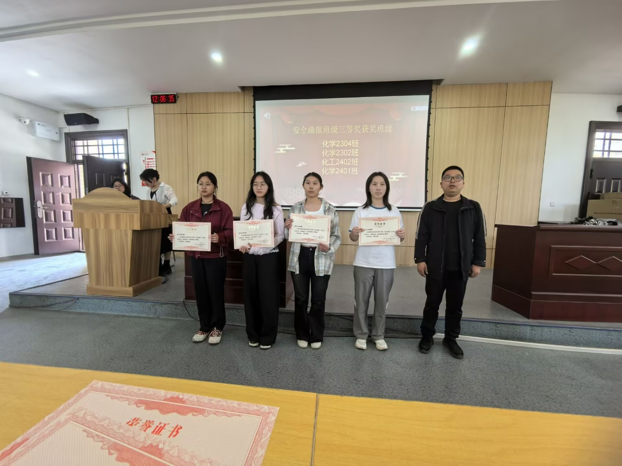 4月15日中午,化学化工学院在博学楼B01教室召开春季安全教育月总结暨表彰会议。学院党委副书记龙刚,全体辅导员,院学生会全体学生干部以及全体大一学生参加此次颁奖活动。