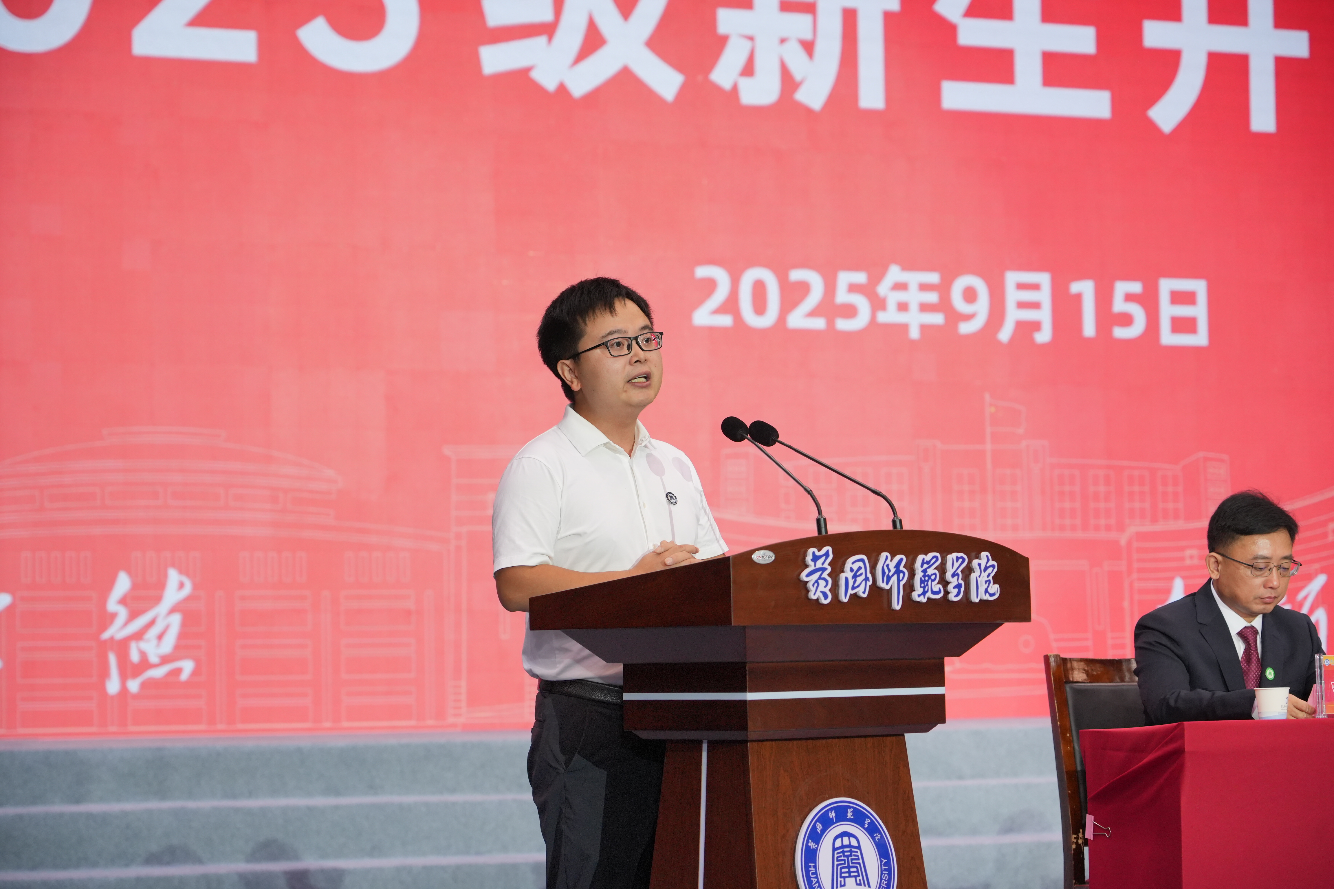 两位代表的发言情真意切、催人奋进,不仅传递了对新生的美好祝愿,更给予了新生成长方向的指引,让2025级新生对大学生活有了更清晰的认知与期待,也进一步激发了他们在黄师逐梦前行的热情与决心。