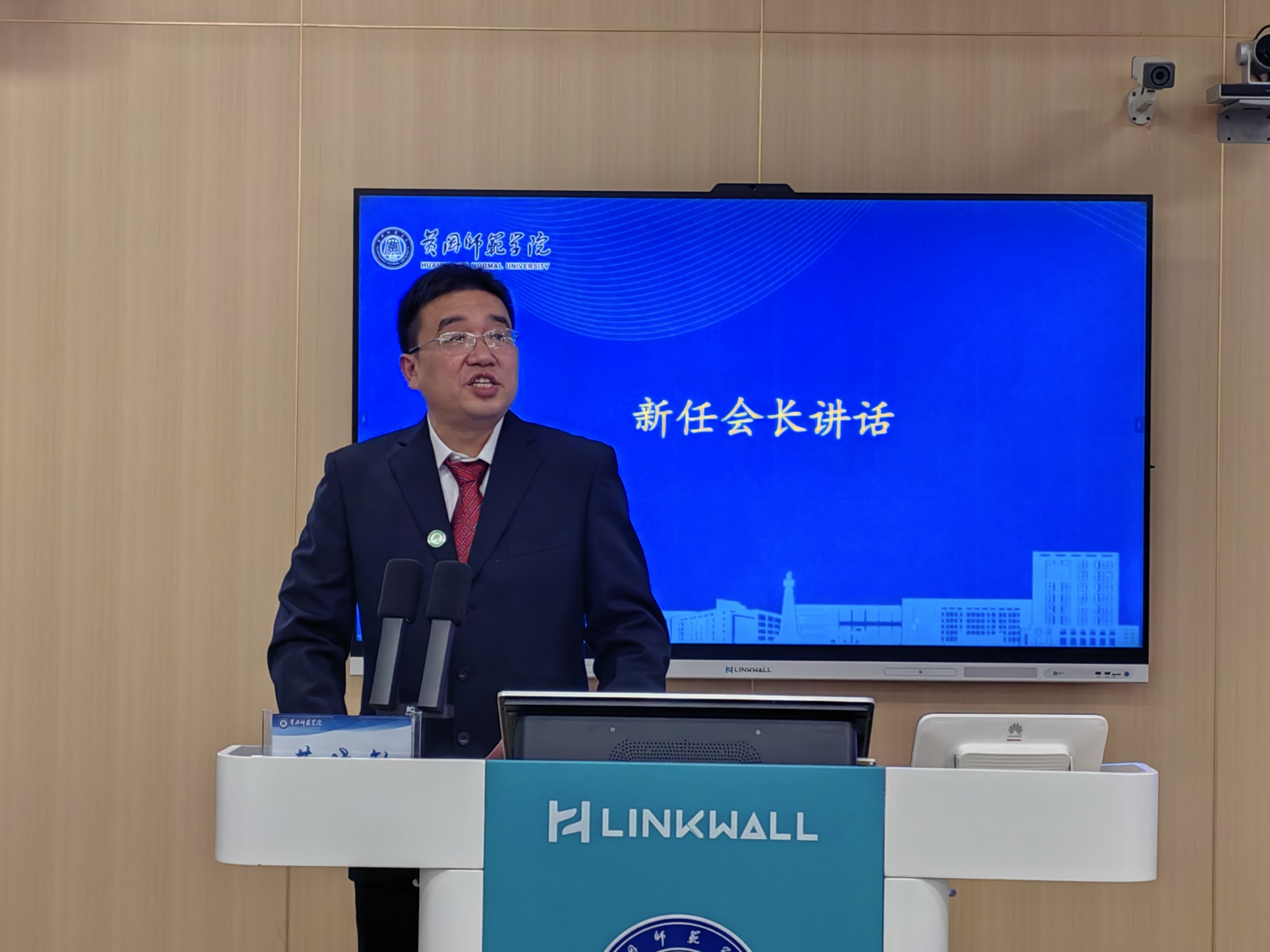 会议第二阶段由化学化工学院田正芳主持,新当选会长龙涛发表《感恩传承 责任担当 实干规划》的发言,表示将凝心聚力、群策群力,为黄冈化工产业高质量发展贡献力量。
